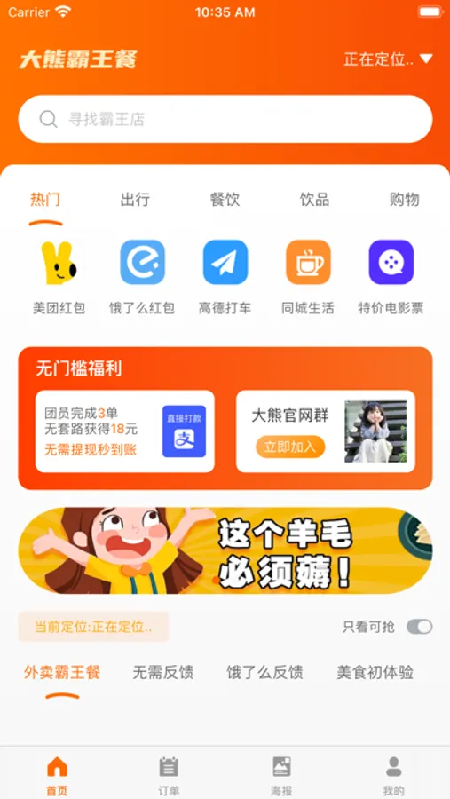 大熊霸王餐将您周边的优质美食活动推送给您,并提供更加省钱吃外卖的方法。