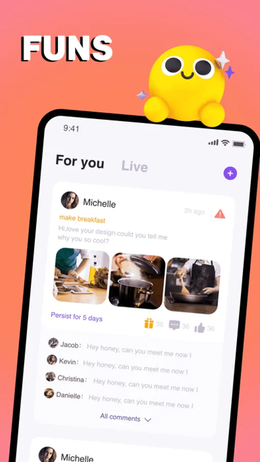 1. Make friends: Help you find people who have the same goals, you can chat each other via video chat ,text chat, and share daily life, exchange ideas, become a better version of yourself.