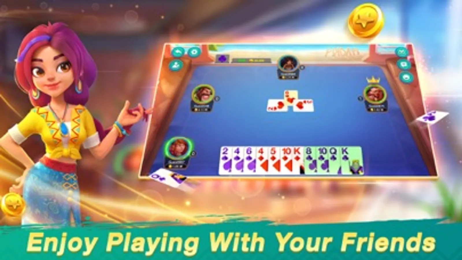 - online courtpiece multiplayer game offers the strategy elements of Mindi card game, getaway, bhabi thulla, any many more and luck elements of trick-tacking games, Daily reward wheel with Crazy graphics.