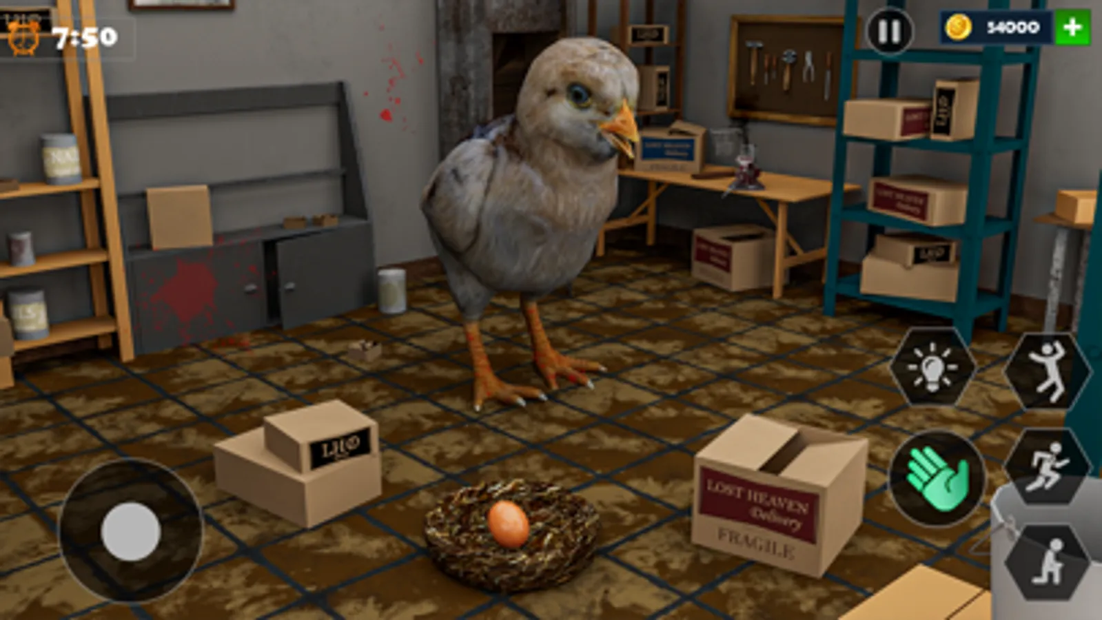 Horror town features haunted buildings and laboratory games. You have a spooky chicken following you. Don't ignore any of the clues in the post-apocalyptic haunted escape game. You'll learn the secret of frightful professors. The ominous fowl will devour your flesh. Discover every single hint to help you leave a haunted house. In this terrifying escape horror game, you play as a lab intern trying to find a way out of this horror puzzle while being the last human.