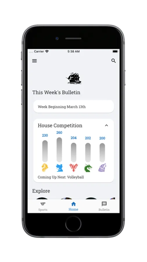 The app allows students to view articles, weekly bulletin, weekly menu, podcast, and house competition results.