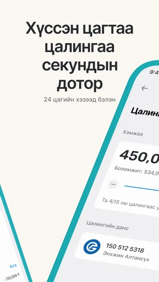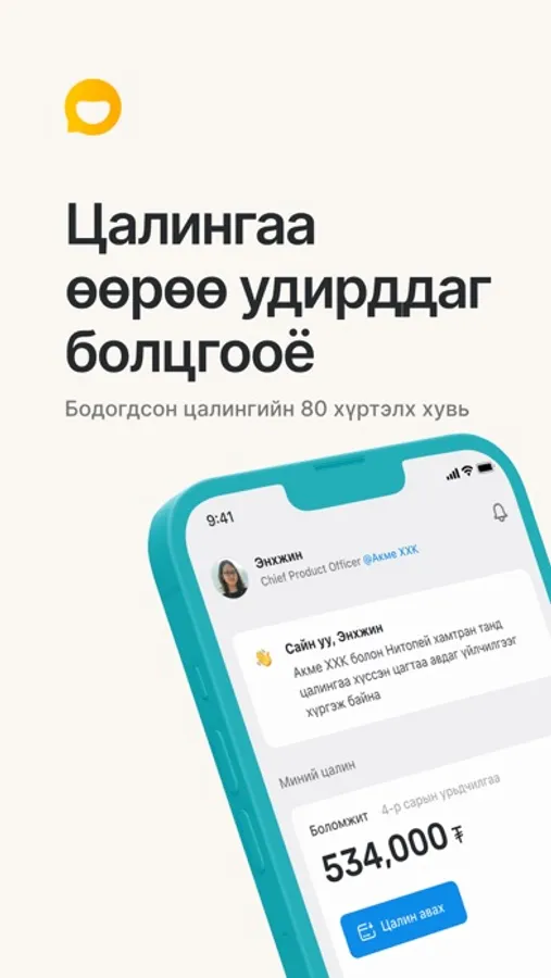 Хараахан буугаагүй цалингаа, хүссэн үедээ дансандаа ав.