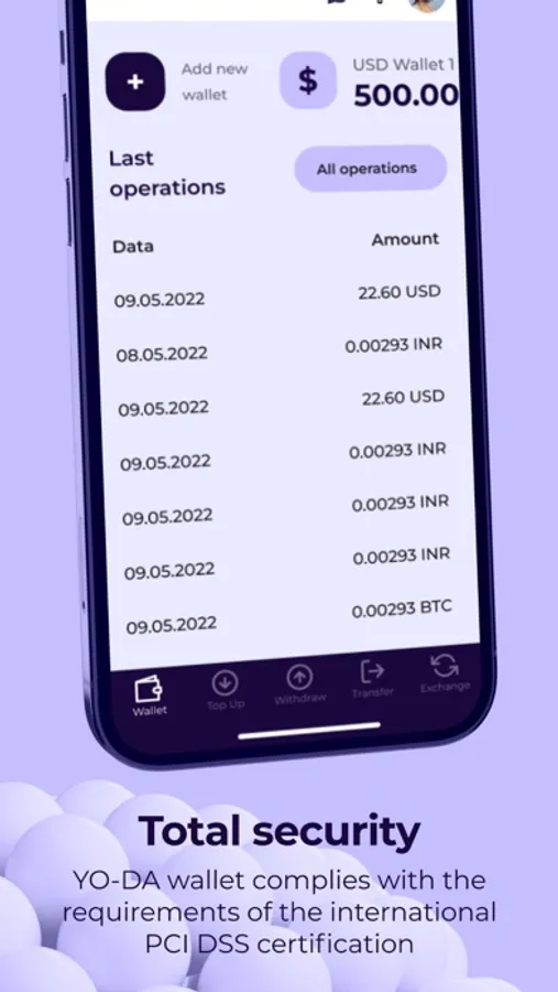 YO-DA Wallet complies with the international PCI DSS certification requirements, providing secure digital storage for any type of assets. Our app guarantees complete security for your digital wallet, ensuring your assets are always safe.cure digital wallet for saving any type of assets