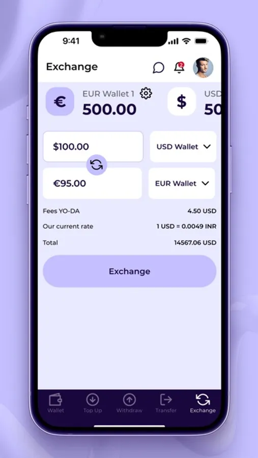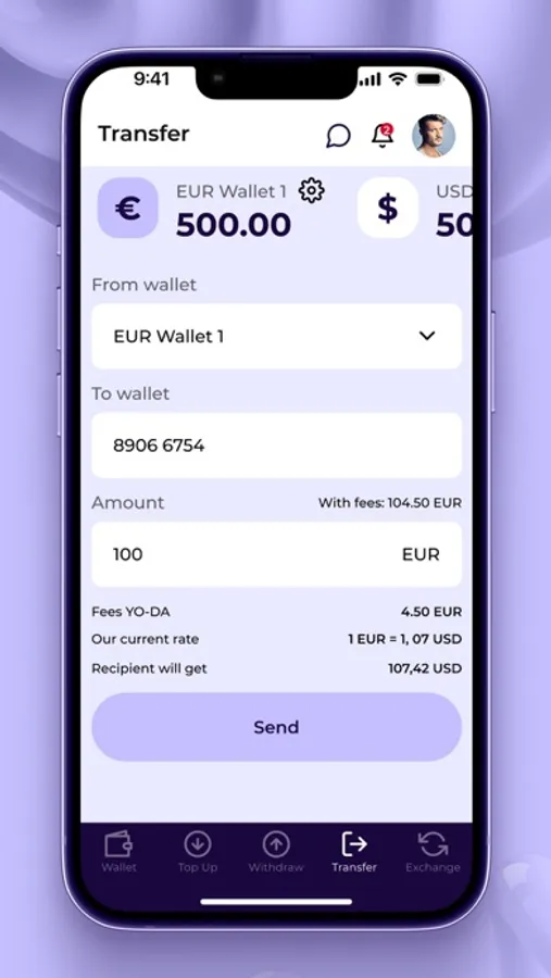 YO-DA Wallet offers a favorable rate for currency exchange and transfer to the recipient's account. With our app, you won't experience any loss in conversion.