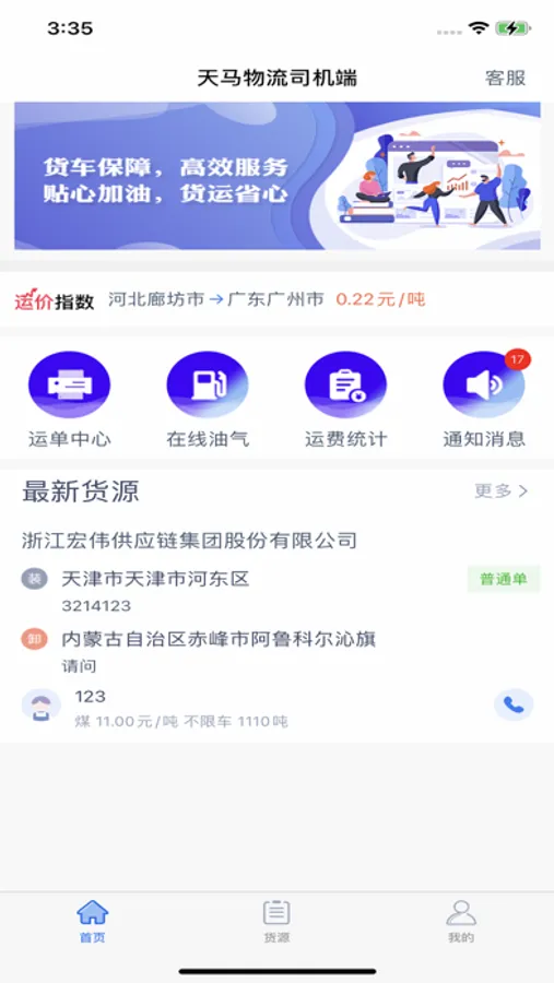 天马网路货运运用“物流+互联网”的理念打造的O2O线上物流服务平台,具有车货高效匹配、运单在线管理、线上结算支付等功能,能够为货主企业及第三方物流企业提供物流运输、物流税务及金融链条优化等综合管理与服务解决方案,实现“车货高效匹配、运单在线管理、线上结算支付、运输轨迹全程可视化”,让发货更简单高效、让物流更安全可控。