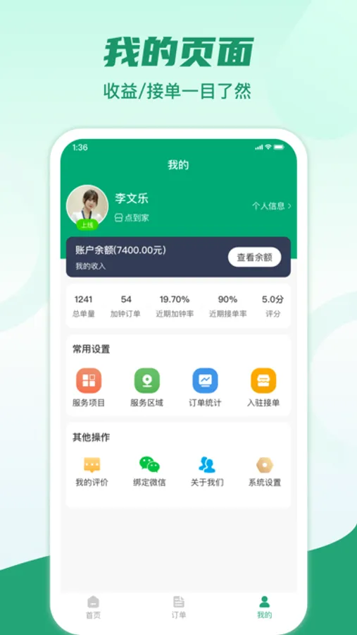 点到家接单是专门为点到家平台打造的技师端,用点到家接单,订单滚滚来!点到家接单不仅可以获得来自点到家服务平台的大量订单,服务商还通过各种渠道获取订单,都能通过点到家接单就近派发给使用点到家接单的服务者。