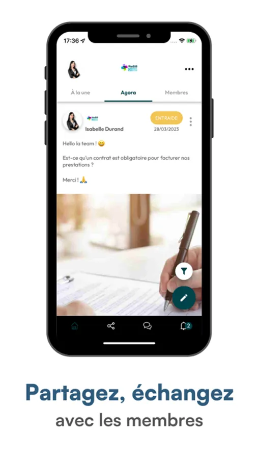 Echangez, mettez en relation et suivez l'actualité de WeBill Santé, votre organisme de formation dédié. Retrouvez les membres du réseau et gagnez en efficacité dans votre travail grâce à votre nouvelle application !