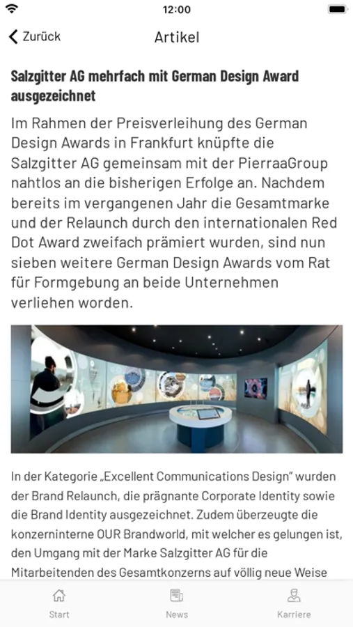 Die App ermöglicht den Zugriff auf News aus frei wählbaren Kanälen der Geschäftsbereiche und der Konzerngesellschaften inkl. Push- und Teilenfunktion. Ihnen stehen zudem Informationen rund um unser SALCOS®-Projekt, Karrieremöglichkeiten und zur Konzerngeschichte zur Verfügung.