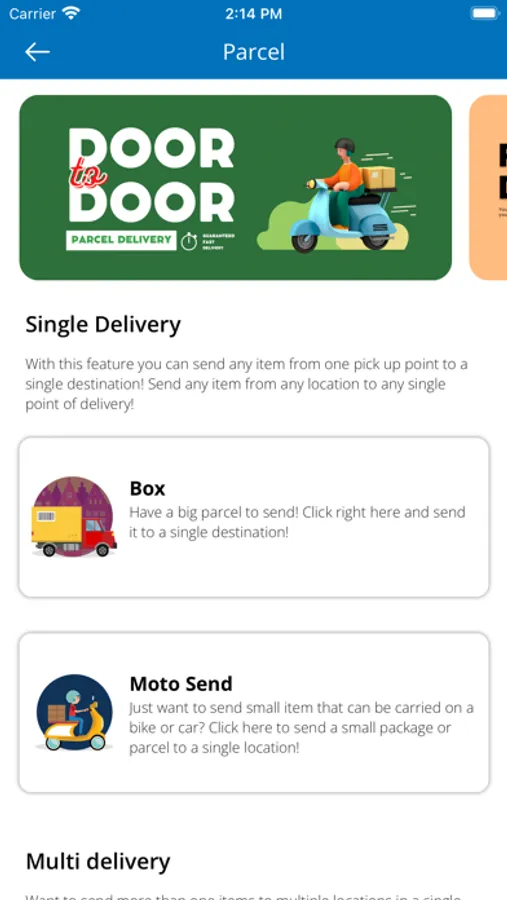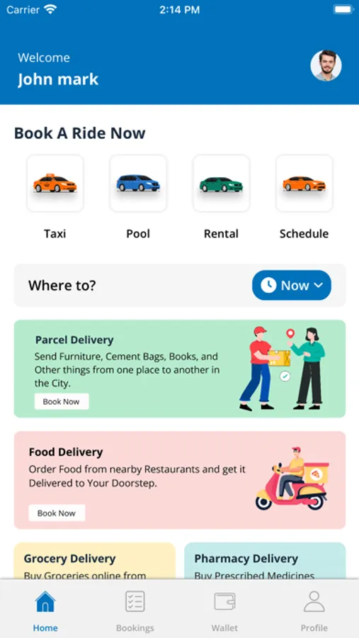 b. Choose from Different Services like Taxis,, Parcel Deliveries, Car Rentals, Food Delivery, Grocery Delivery and more