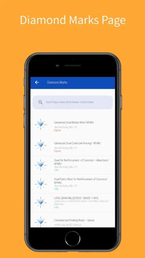 Using the app you can now be able to perform all inquiries regarding the verification of various Products permit validity status.i.e .Standardization mark,Diamond mark and Fortification Mark.