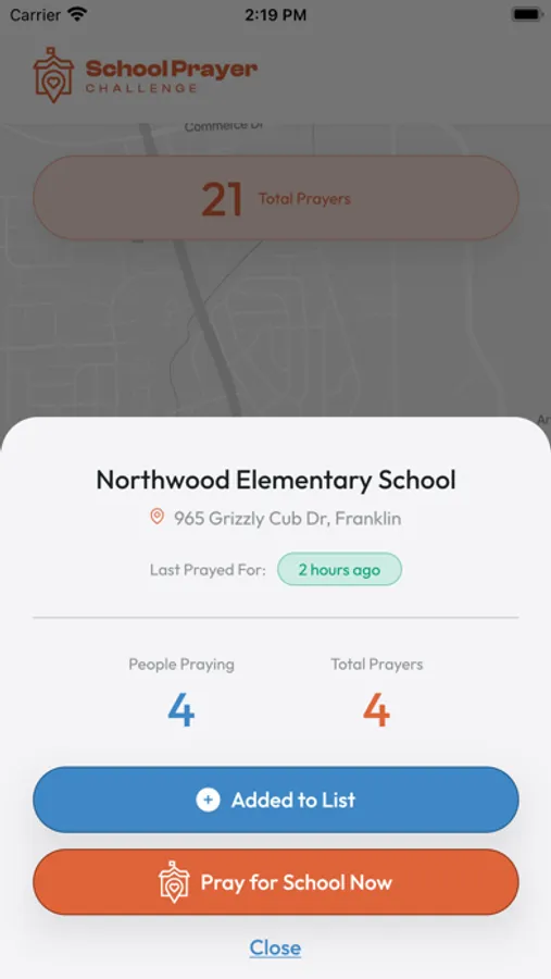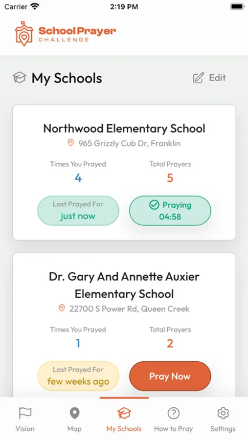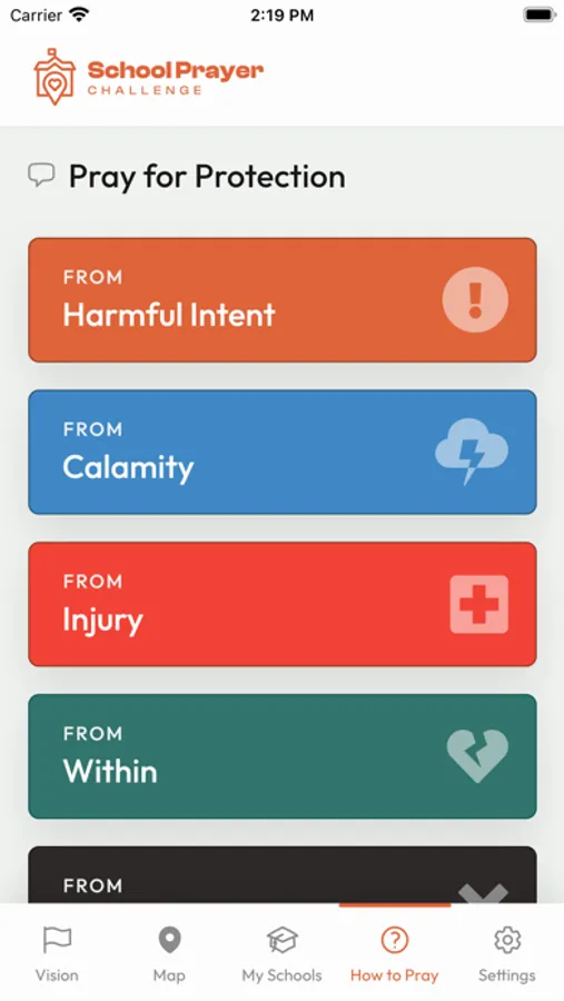 Most users commit to pray for 2 schools in their surrounding area and 1 school outside their area where prayer is not active on the map. Reach out to 4 friends and share the app.