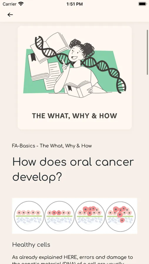 With the app's informative library, you can access a wealth of knowledge about Fanconi anemia, oral self-exams, and valuable oral care tips. Step-by-step instructions guide you through each stage of the self-exam process. The app emphasizes the importance of regular self-exams and educates users.