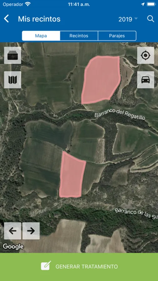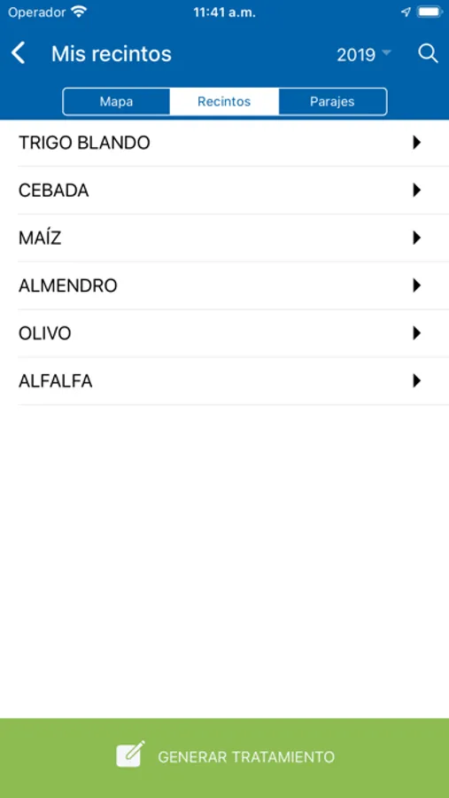 2. Si deseas crear un nuevo tratamiento pulsa en Mis recintos, selecciona los recintos a los que se va a aplicar, y sigue los pasos que indica la app para generar el tratamiento.