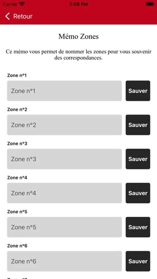 7. Configuration : Vous pouvez enregistrer le zonage de vos accessoires pour mémoriser et retrouver facilement les numéros de zones par rapport aux endroits.