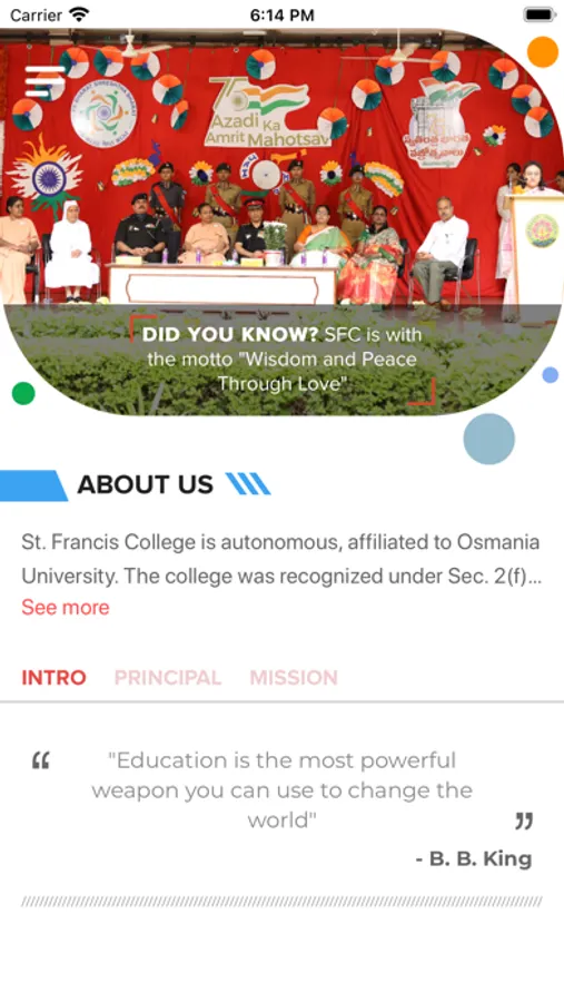St. Francis College is autonomous, affiliated to Osmania University. The college was recognized under Sec. 2(f) 12B of the University Grants Commission in 1964 and conferred the Status of Autonomy through letter No. F. 24-7/87 (NFE) dated 9 May, 1988