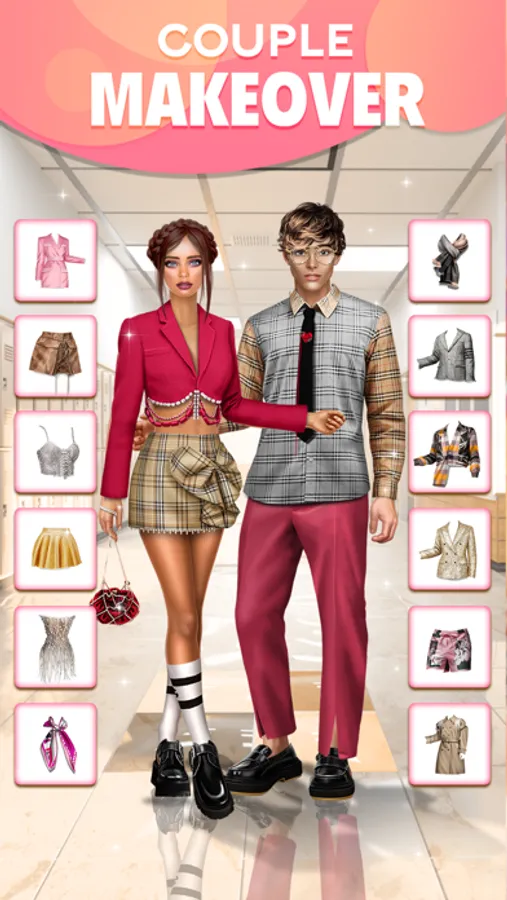 Start dressing up and make up contest in couple dress up games with levels. Learn how to make looks for fashion stars in different styles: casual, formal, sporty, school, glamorous. Enjoy rich college couple makeover & styling dolls, invite your BFFs to challenge their skills, let’s see who is the best college girl and boy stylist!