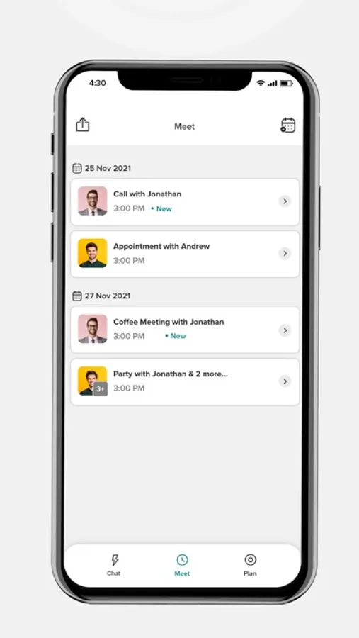 Meet: Schedule meet-ups, events, and calls with the option to reschedule, and never miss a meeting again.