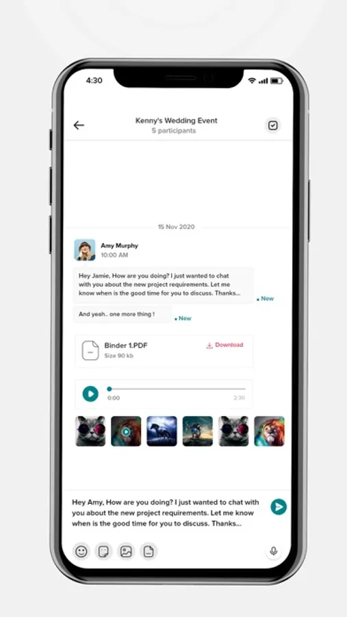 Chat: Start a topic-based chat and calls in real-time for seamless collaboration with clients or friends.