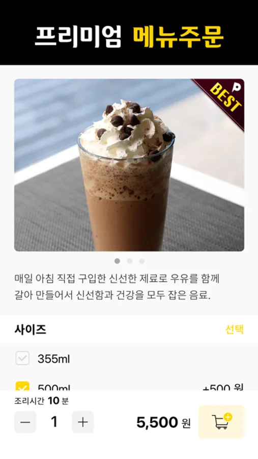 - 메뉴판 색상 성택 : 3가지 색상 중 하나 선택(블랙 색상 기본)