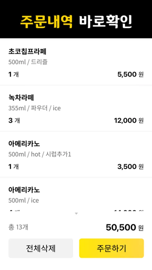 - 주문내역 : 고객이 주문한 내역 실시간으로 알림