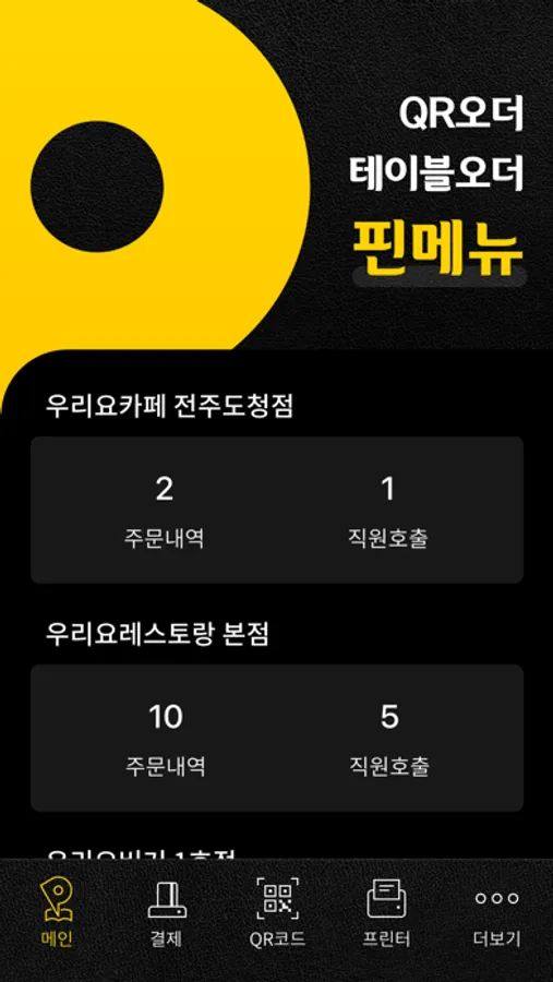 핀메뉴는 고객이 주문하는 메뉴판 앱과 관리용 앱을 분리해서 지원합니다.