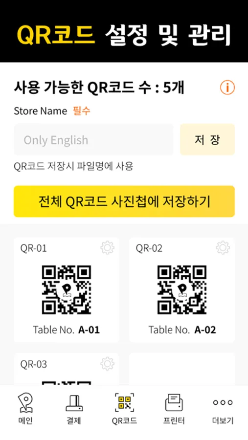 - 직원호출 : 고객의 간단한 요청을 실시간으로 알림