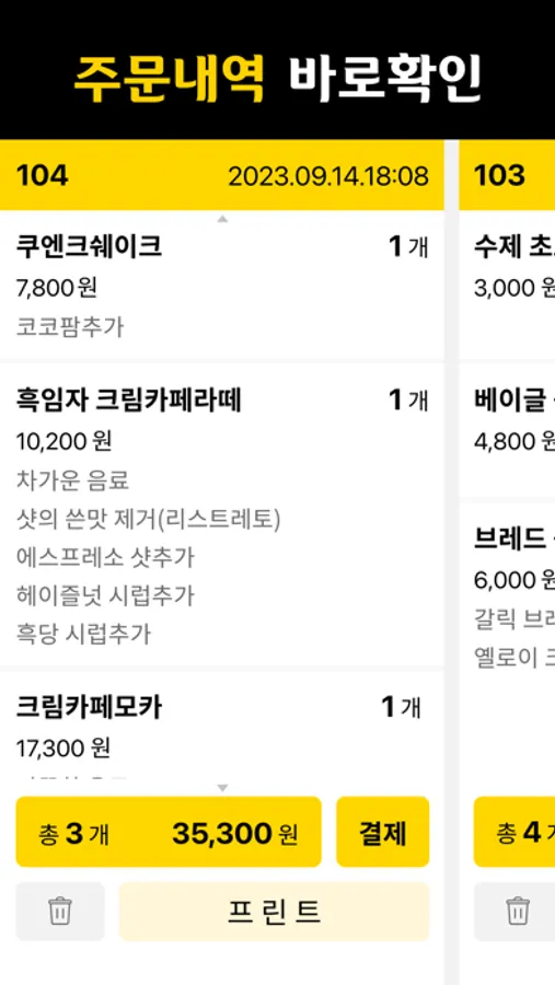 - 주문내역 : 고객이 주문한 내역 실시간으로 알림