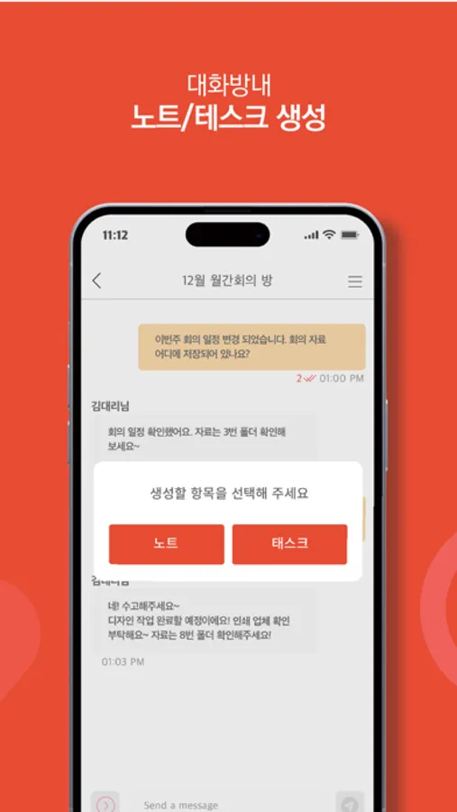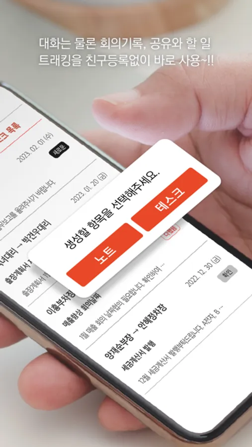 - 노트 기능을 이용해, 회의록을 기록해보세요.