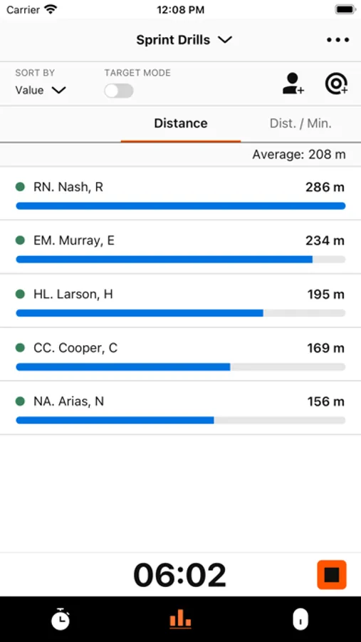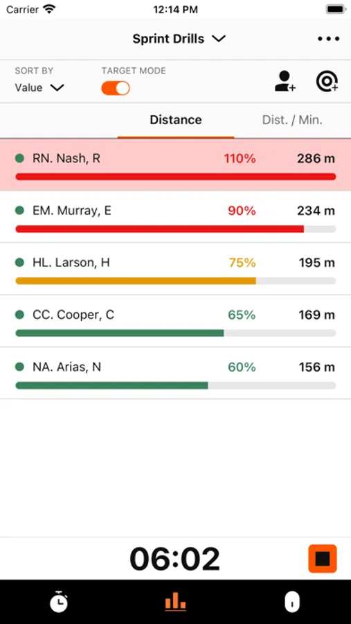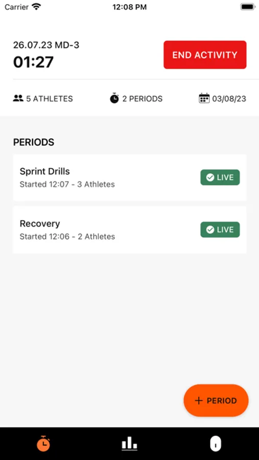 - Run one or more periods at the same time to follow different groupings within a team training session