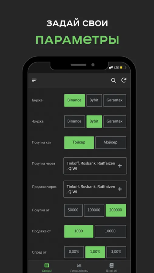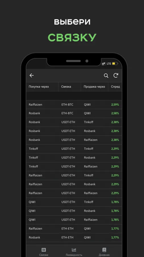 Spread App - первый в своем роде финансовый инструмент по поиску Р2Р связок и анализу ликвидности, созданный специально для мобильных устройств.