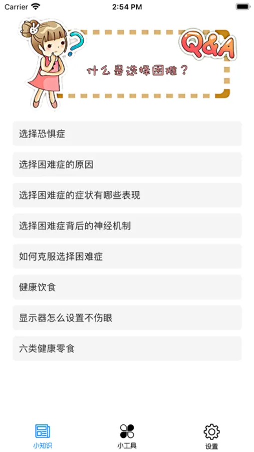 通过本APP您可以了解什么是选择困难,选择困难症表现在哪方面,选择困难症的原因等知识;