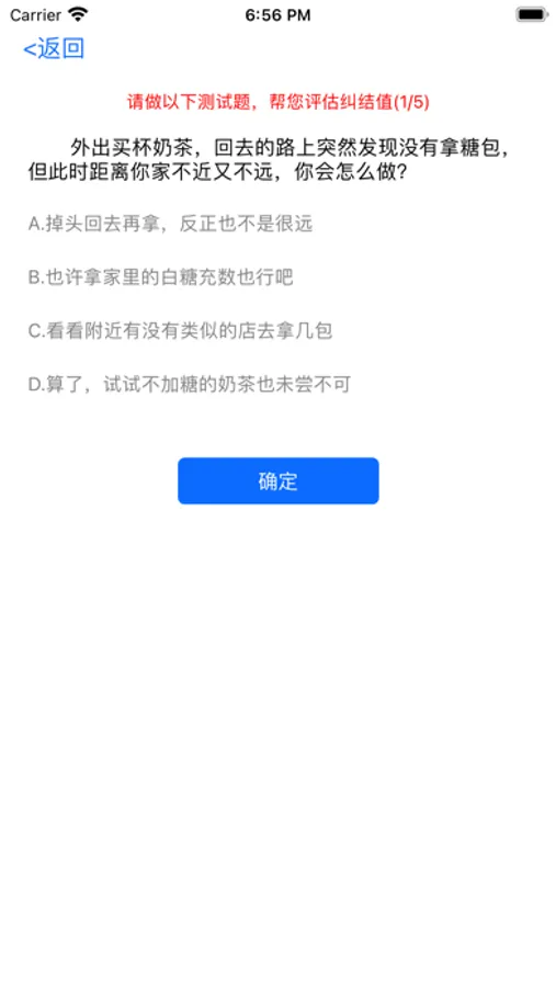 通过本APP完成一套选择困难症测试题,系统帮您计算出纠结评分;