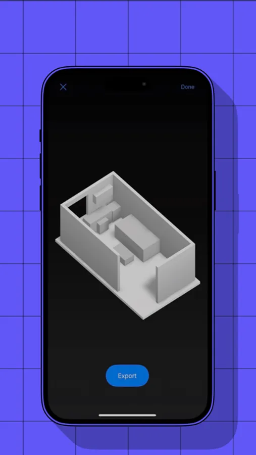 With Room(Scan) you can easily export your scan in a USDZ file format that include dimensions of each component recognised in the room, such as walls or cabinets, as well as the type of furniture detected. The dimensions and placement of each individual component can be further adjusted when exported into various USDZ-compatible tools, such as Cinema 4D, Shapr3D, or AutoCAD.