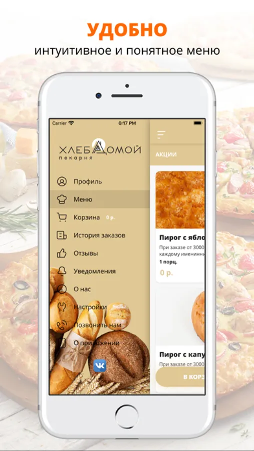 Воспользуйтесь удобным приложением для заказа еды Пекарня Хлеб Домой.