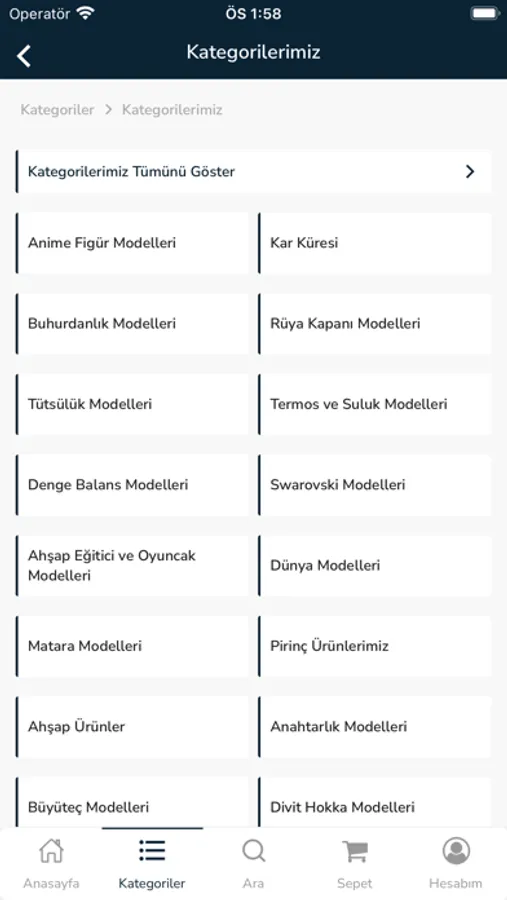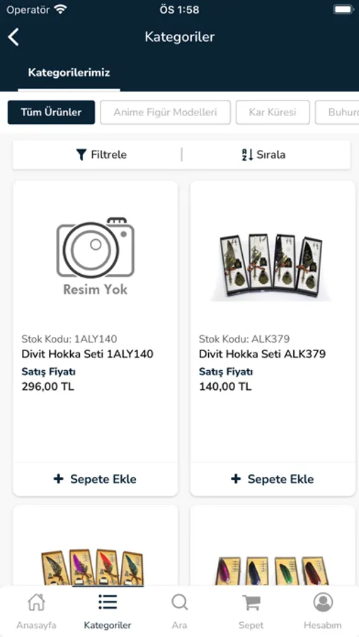 * Ürün kategorilerinde filtreleme yapabilirsiniz