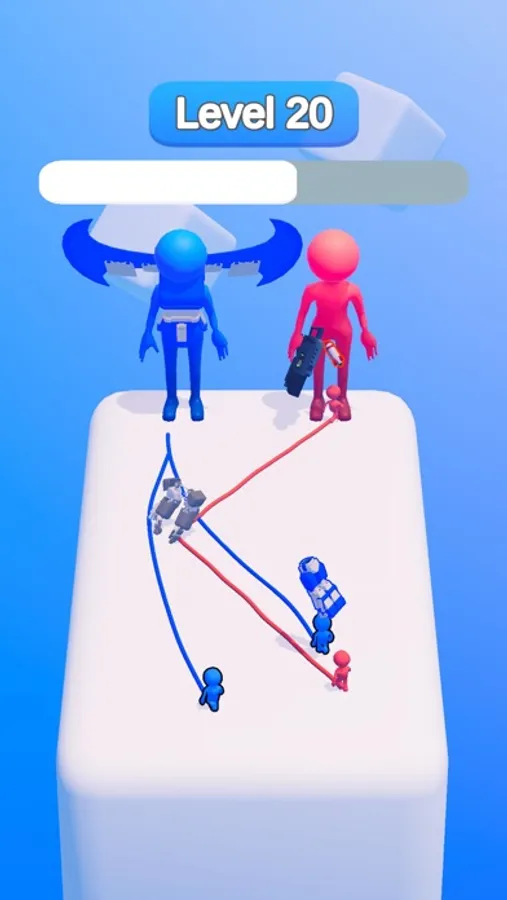 Upgrade Battle is a thrilling game that requires players to draw a path for their workers to collect upgrades for their robot. The game starts with two powerful robots facing off against each other, and the goal is to upgrade your robot with the best weapons, armor, and speed so that it can defeat the enemy robot.