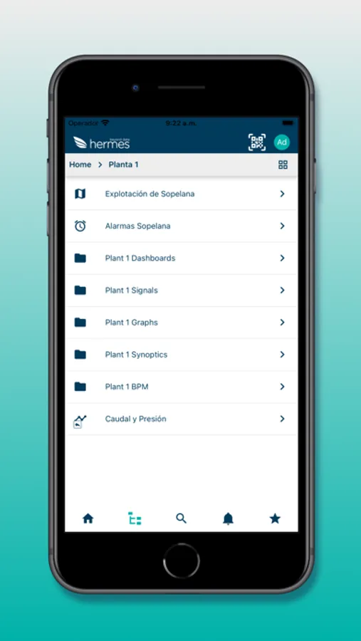 Aplicación móvil para la explotación de datos de la plataforma Hermes. Hermes es una plataforma para la gestión de la infraestructura IoT de diferentes orígenes de la red de aguas de Saur, para permitir la toma de decisiones de una manera ágil y precisa.