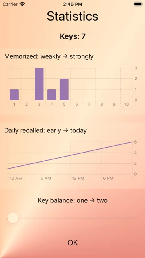 You enter a couple of words or expressions - keys. A smart algorithm that uses a human memory model will quiz you to remember the connections between words from the first to the second or vice versa. The successes and mistakes of your actions are analyzed and remembered. The algorithm adapts to select the most essential pair of words for you at any time.