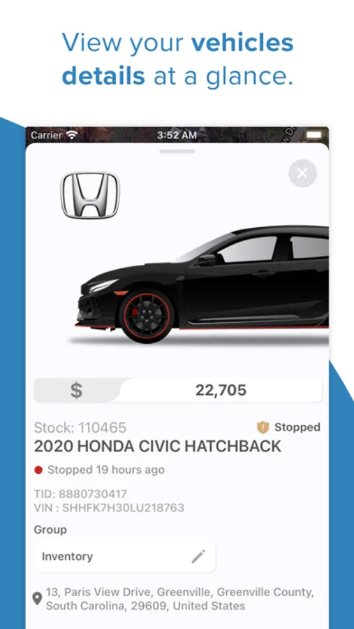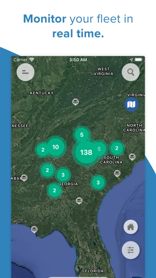 - Users will be able to monitor the speed of each vehicle and the battery life of each device simply by tapping on the vehicle icon located on the map - accurate to within 2.5 meters (6 feet) of the device. The location also updates automatically, showing the real-time GPS location of the user's vehicles.
