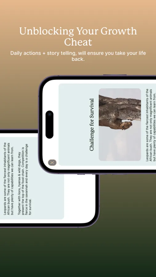 - 7 Real Life themes to chose from: Self-Confidence, Anxiety, Mindfulness, Get sh#t done, Perspective, Relationships, Leadership