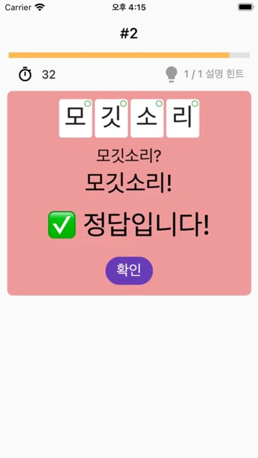 높은 난이도로 구성된 한글 퀴즈를 풀어보며, 우리말을 학습할 수 있는 앱입니다.