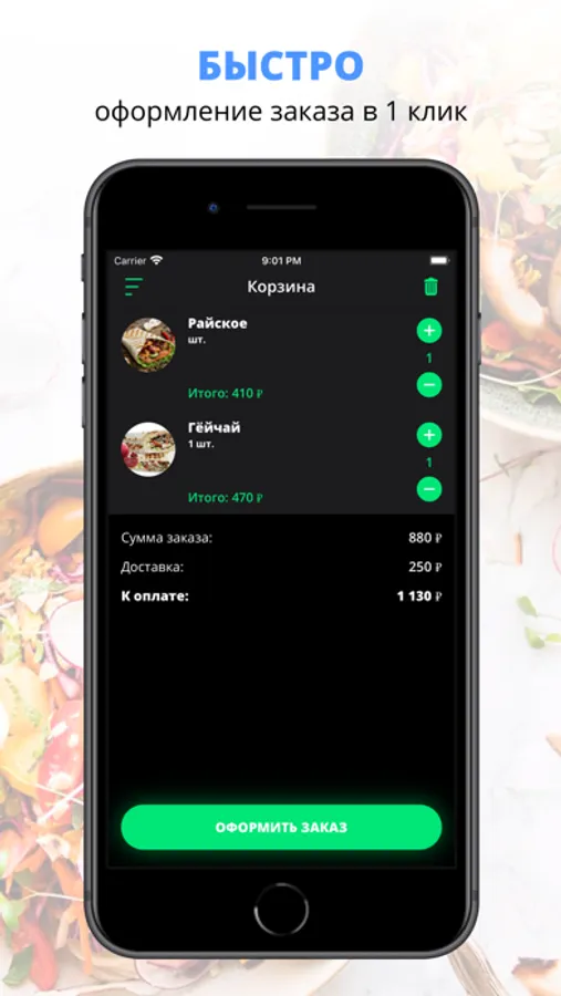 Скачивайте наше приложение, оформляйте заказ и наслаждайтесь любимой едой, где бы Вы ни были! Приятного аппетита!