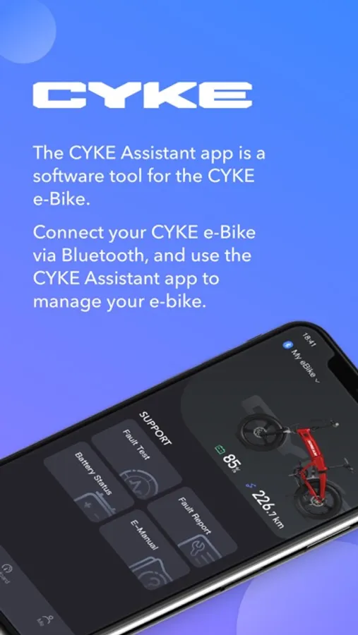 Connect your CYKE e-Bike via Bluetooth, and use the CYKE Assistant app to manage your e-bike.
