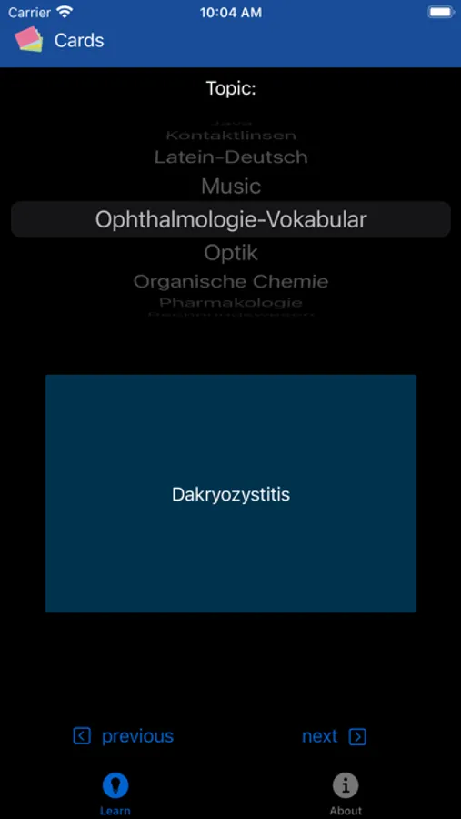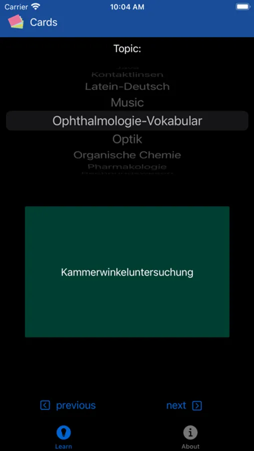Cards gives you access to all cards from cards.michaeljob.ch - study with over 2'500 flashcards mainly from optometry relevant fields as well as some others. Cave: Most of the cards are in german or english.