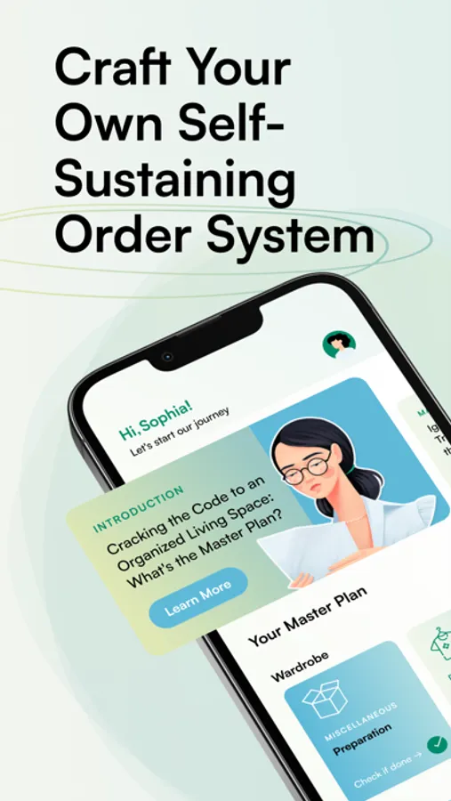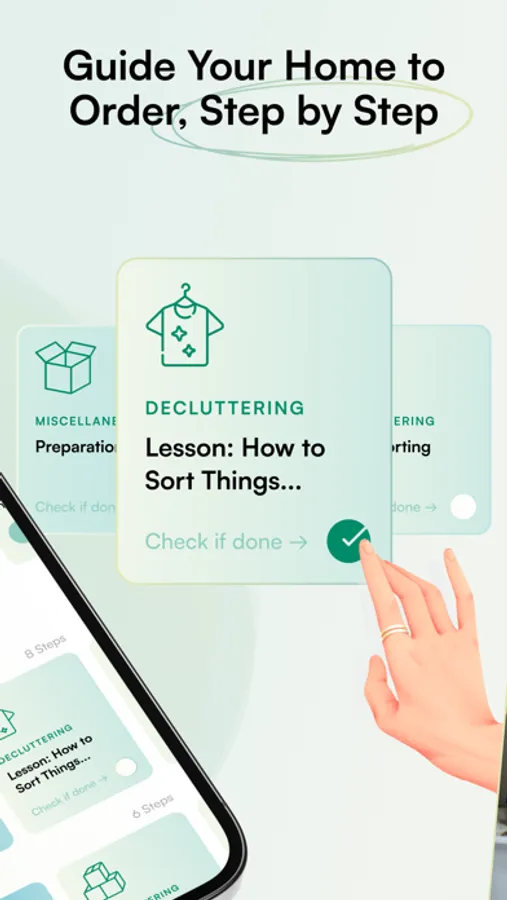 Create a sustainable order with Clea N., your personal decluttering coach. Organize your space step by step, and wave goodbye to deep cleaning, stress, and chaos.