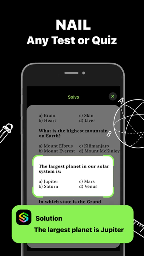 Solvo can answer all sorts of questions typically used in tests and quizzes, including T/F, multiple-choice, and open questions. Simply tap Text-based problems, snap a picture of the question, and get your answer in seconds. This feature can also help you test your knowledge and prepare for exams.