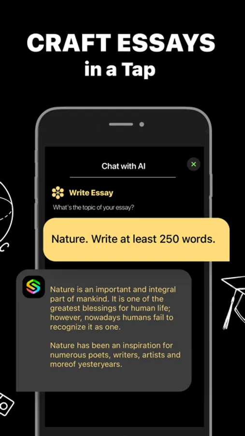 Need to write an essay on a subject that is as boring as it is complicated? No problem! Simply tap Create Essay and type your subject. You can go ahead and use the output directly or to get your creative juices flowing.