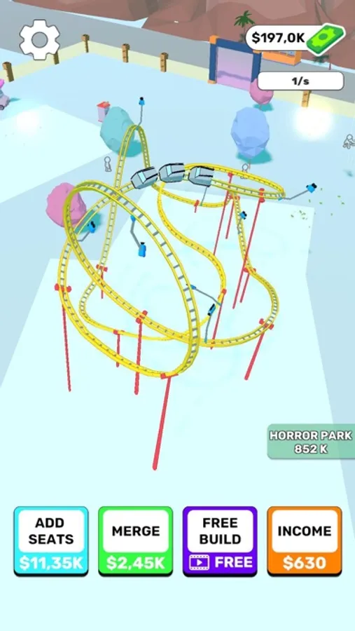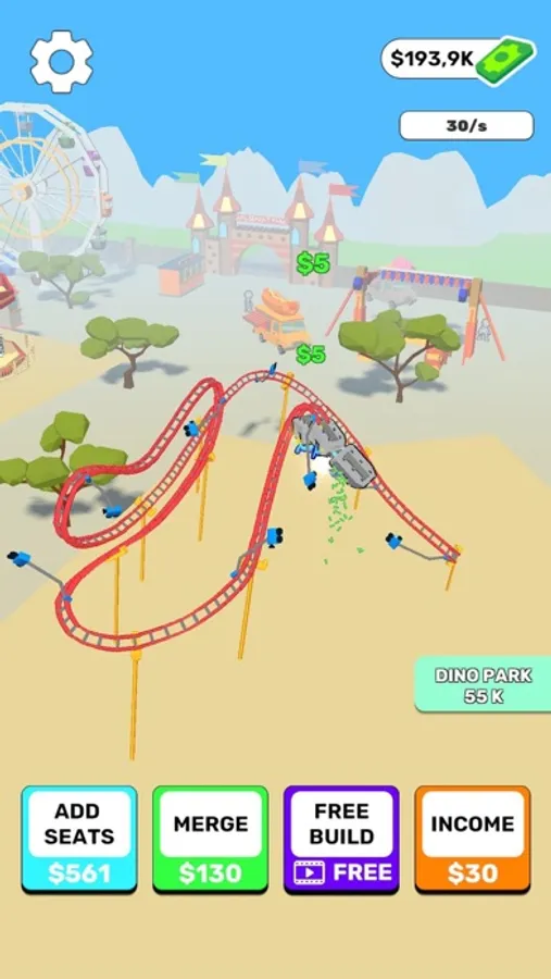 Increase your efficiency to make as much money as you can! Hit the screen and speed up the train so visitors feel the drive and you hear the clinking of coins. Merge trains to increase the quality, and at the same time, the cost of the trip. Add more checkpoints and make more and more intricate slides. And boost your income to double your efforts! Can you become a real tycoon and grow your business to its limits? Then build your own rollercoaster and earn some cash!