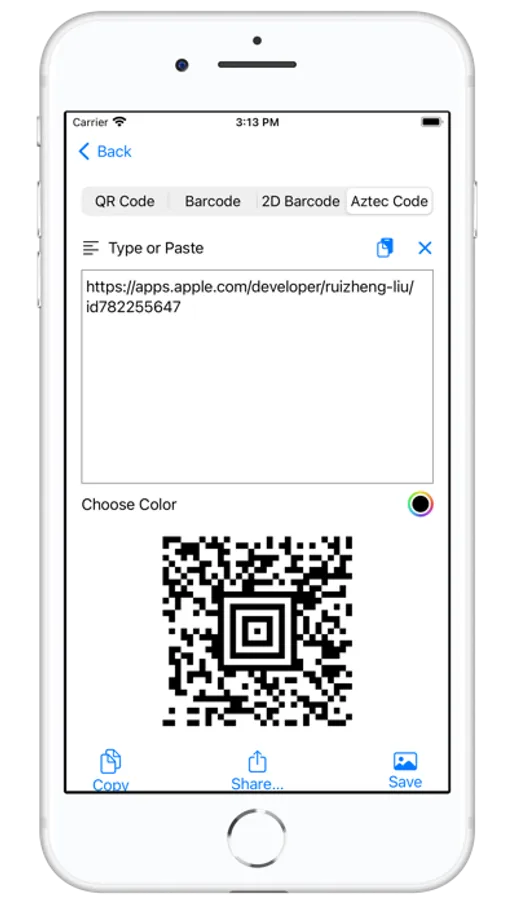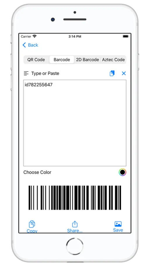 This app let you generate barcode and 2D Code including QR, PDF417 and Aztec code; scan barcode and 2D code using your iPhone/iPad camera; detect barcode and 2D code on images form Photo Library.