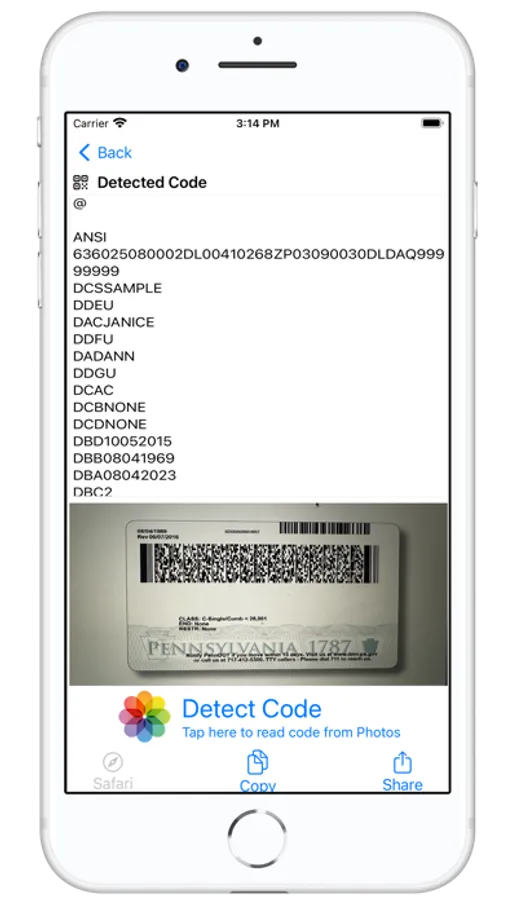 2. Scan code using iPhone/iPad camera for all the supported barcode and 2D code